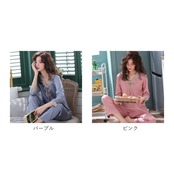 ・長袖9分丈と長ズボンのツーピースで、季節を問わず着用可能。寒い日も暖かく過ごせる快適なルームウェア。上品さと機能性を兼ね備えたアイテム。