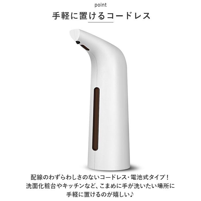 ・配線のわずらわしさのないコードレス・電池式タイプ!洗面化粧台やキッチンなど、こまめに手が洗いたい場所に手軽に置けるのが嬉しい♪