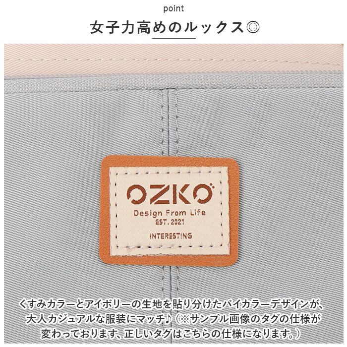 ・パッと見はお洒落なお出掛け用バッグ♪くすみカラーとアイボリーの生地を貼り分けたバイカラーデザインが、大人カジュアルな服装にマッチ♪
