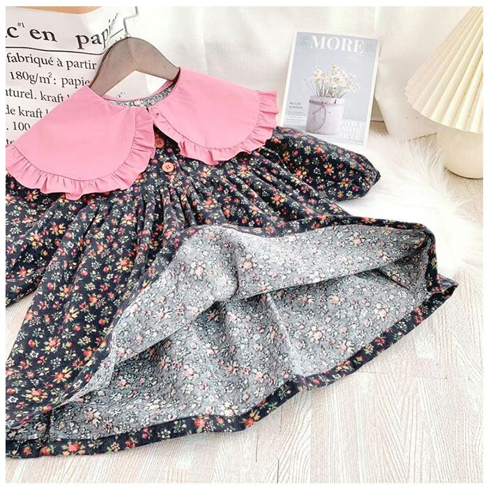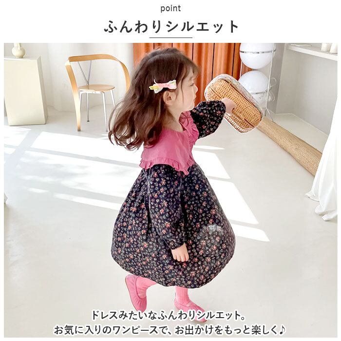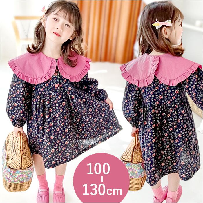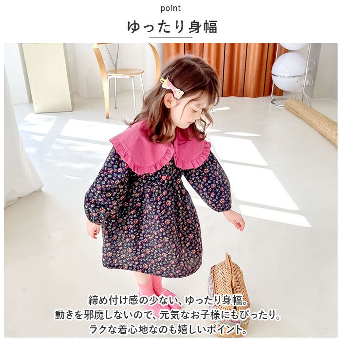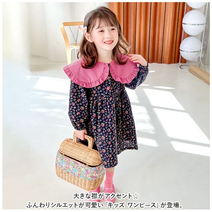 ・大きな襟がアクセント☆ふんわりシルエットが可愛い「キッズ ワンピース」が登場。