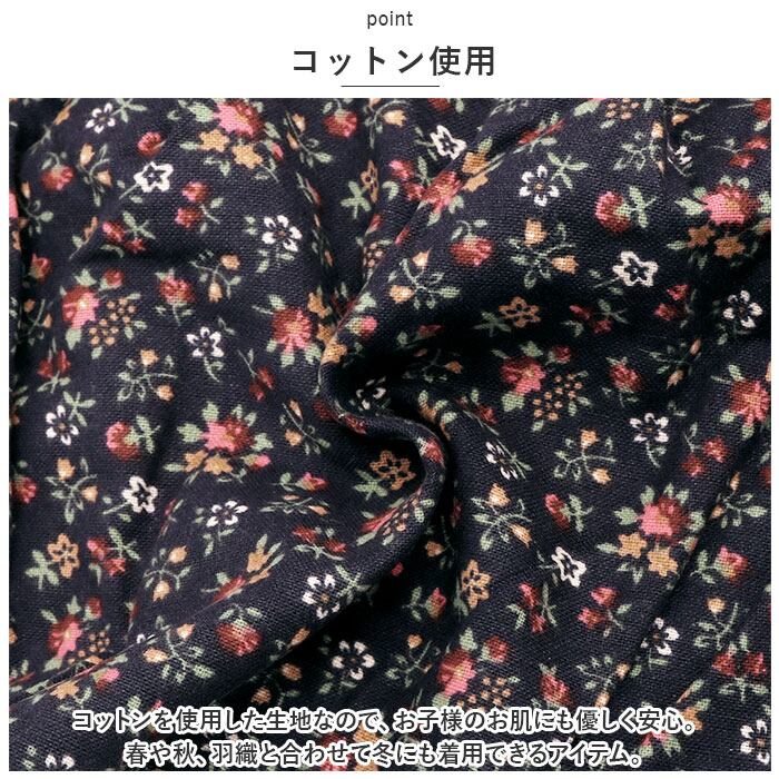 ・コットンを使用した生地なので、お子様のお肌にも優しく安心。春や秋、羽織と合わせて冬にも着用できるアイテム。