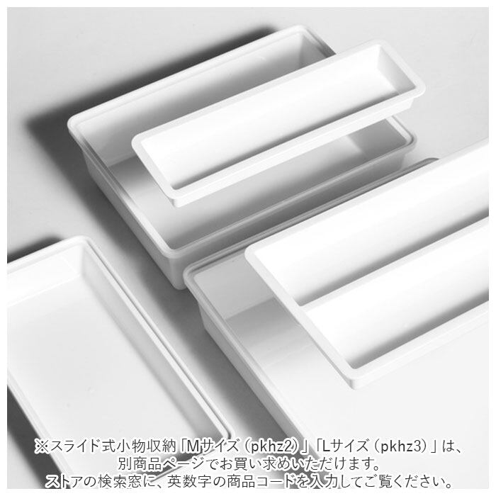 ・スライド式小物収納シリーズ「Mサイズ」「Lサイズ」と組み合わせて小物を整理すれば、だれでも収納上手に!(※スライド式小物収納「Mサイズ(pkhz2)」「Lサイズ(pkhz3)」は、別商品ページでお買い求めいただけます。ストアの検索窓に、英数字の商品コードを入力してご覧ください。)