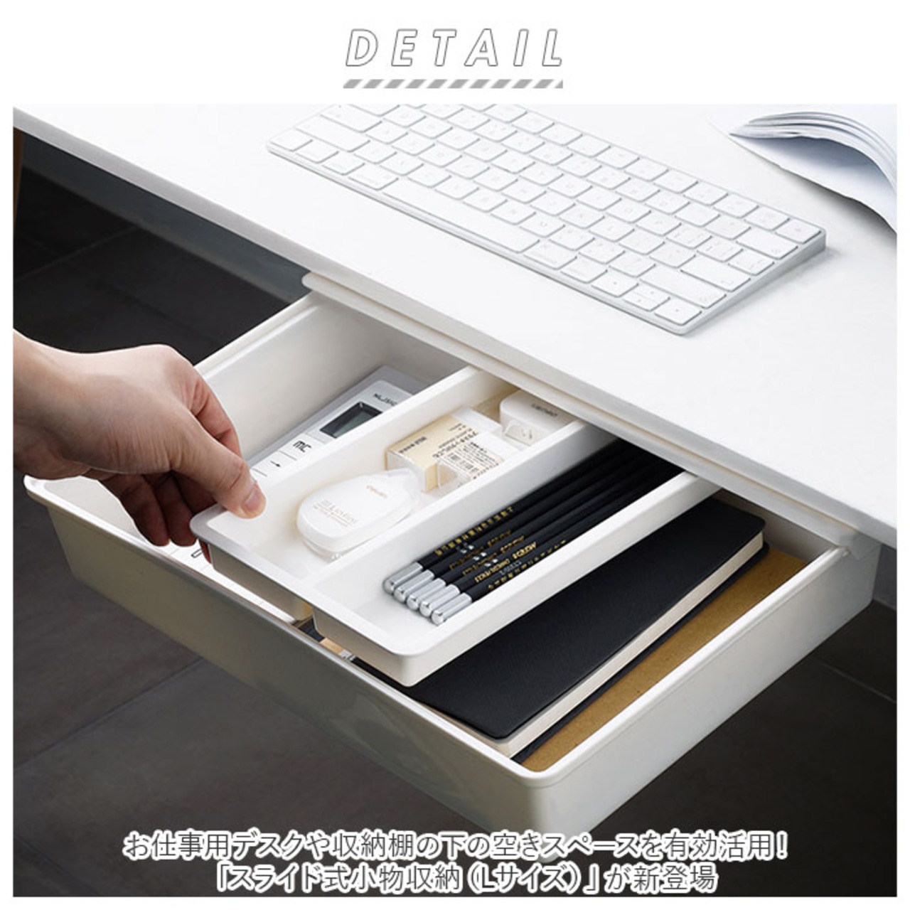 デスク 引き出し トレー 取り付け Lサイズ 通販 引出し 後付け トレイ 机 テーブル デスク下 キッチン カトラリー 調理器具 シンプル 無地 ホワイト 白 小物収納 整理 工事不要 穴あけ不要 机上収納用品 整理用品 文房具 事務用品 日用品雑貨
