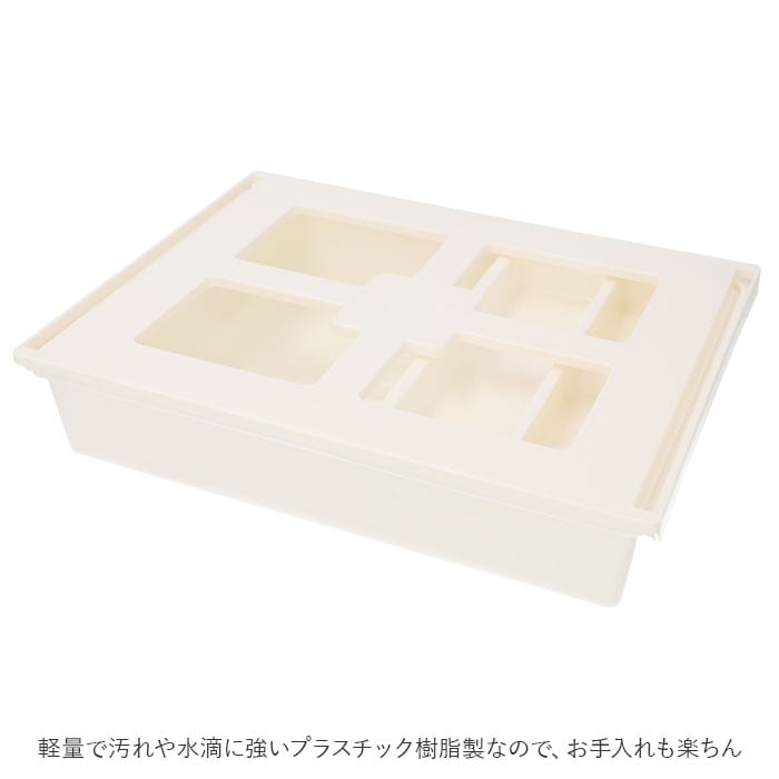 ・お部屋のインテリアに優しく調和する柔らかなホワイトカラー。軽量で汚れや水滴に強いプラスチック樹脂製なので、お手入れも楽ちん。