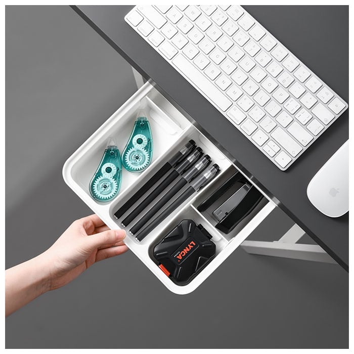 ・テレワークのデスクで散らばりがちな筆記用具や電卓などのステーショナリーをまとめて収納すれば、机の上がより広々とした作業スペースに。