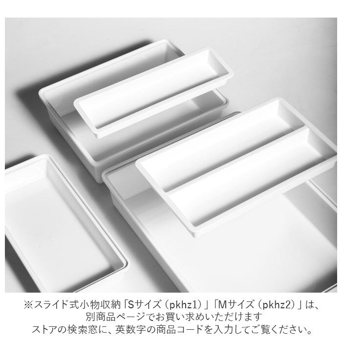・スライド式小物収納シリーズ「Sサイズ」「Mサイズ」と組み合わせて小物を整理すれば、だれでも収納上手に!(※スライド式小物収納「Sサイズ(pkhz1)」「Mサイズ(pkhz2)」は、別商品ページでお買い求めいただけます。ストアの検索窓に、英数字の商品コードを入力してご覧ください。)