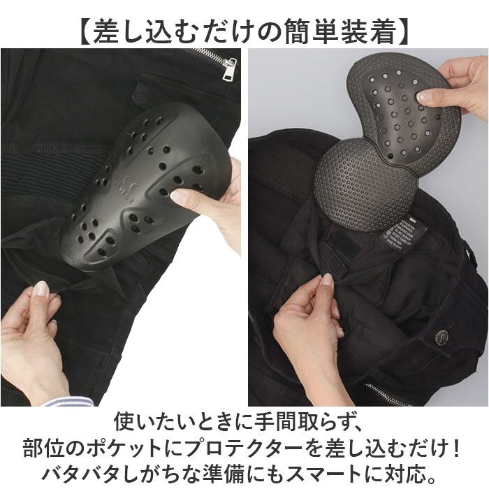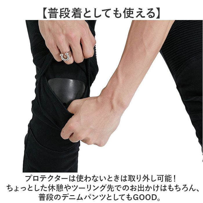 ・プロテクターは使わないときは取り外し可能!ちょっとした休憩やツーリング先でのお出かけはもちろん、普段のデニムパンツとしてもGOOD。