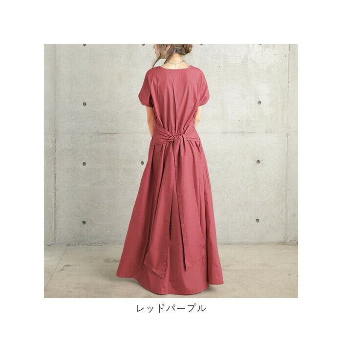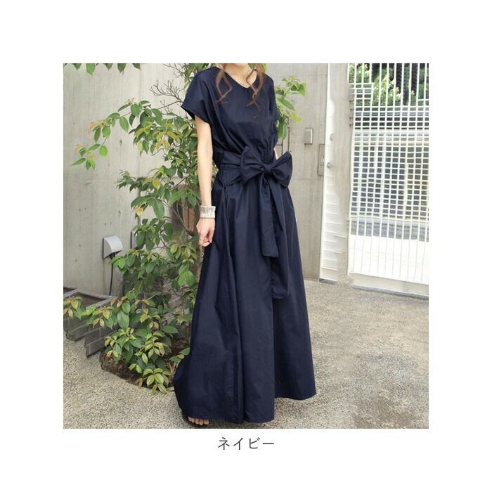 ワンピース レディース ロング 半袖 通販 リボン 大きい ロング ワンピ フレア フレアスカート ロング丈 リボンベルト ゆったり 体型カバー 無地 シンプル 前結び 後結び おしゃれ かわいい
