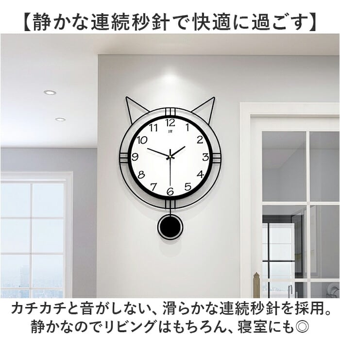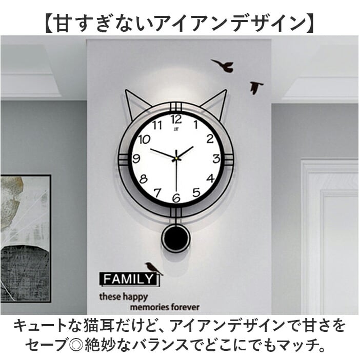 ・パッと目を引く猫耳デザインと、ゆらゆら揺れる振り子で、お部屋を一気に癒し空間に♪