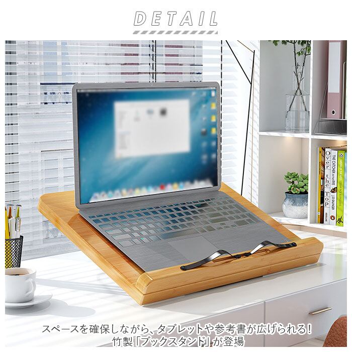 ・B4サイズ程度の本やタブレットなどを立てて見ることが出来るので、スペースの限られたデスクの上もスッキリ。