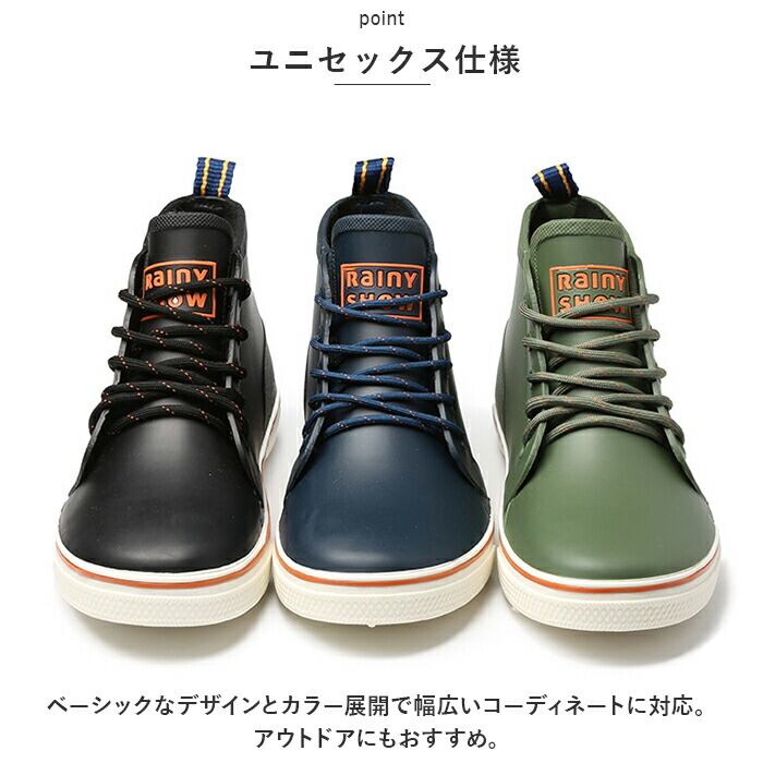 ・レインブーツに見えないスタイリッシュなハイカットタイプ。いつものスタイルを崩さず、雨の日もオシャレに。