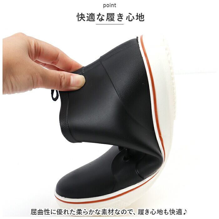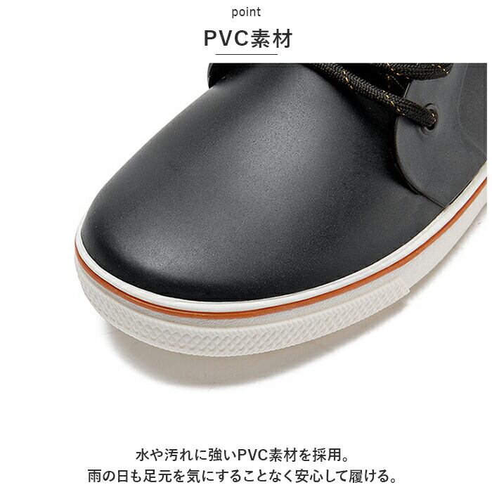・水や汚れに強いPVC素材を採用。雨の日も足元を気にすることなく安心して履ける。