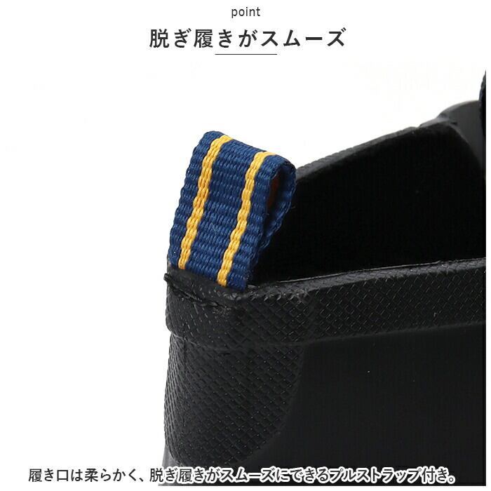 ・履き口は柔らかく、脱ぎ履きがスムーズにできるプルストラップ付き。