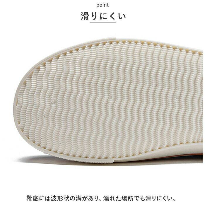 ・靴底には波形状の溝があり、濡れた場所でも滑りにくい。