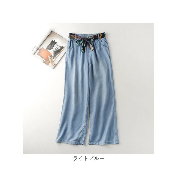 ワイドパンツ レディース 通販 デニムパンツ レディースパンツ 動きやすい ボトムス ズボン ハイウエスト おしゃれ パンツ ロングパンツ デニム ジーンズ カジュアル シンプル 無地 薄手 夏 春 婦人服 かわいい ゆったり