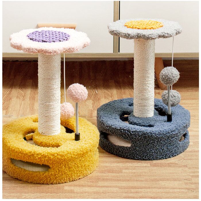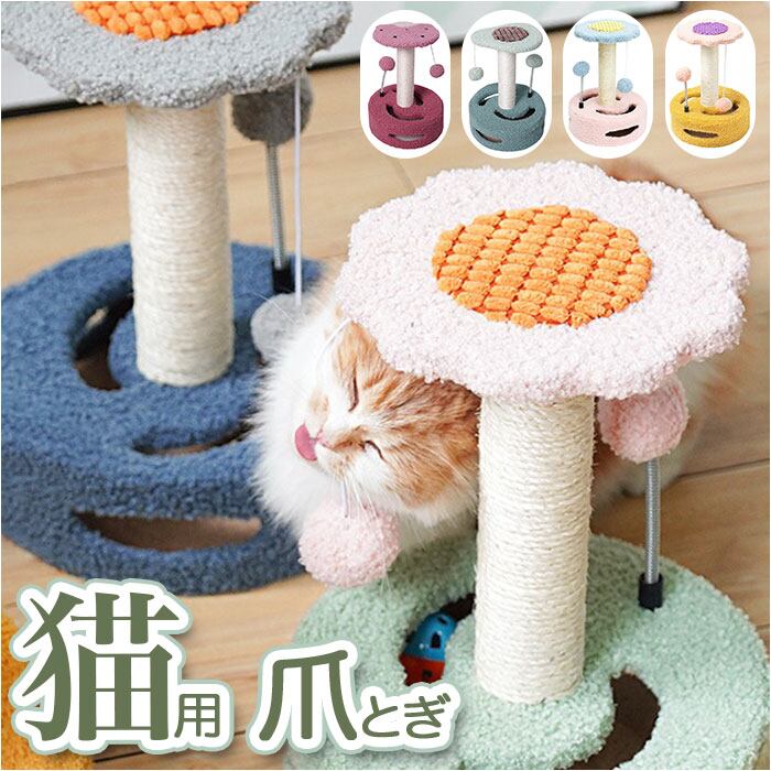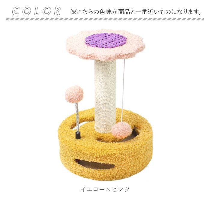・お花や果物をモチーフにした可愛らしいデザインに、ネコちゃん大興奮の仕掛けがいっぱい♪優しい色彩がインテリアのワンポイントになるミニキャットタワー。