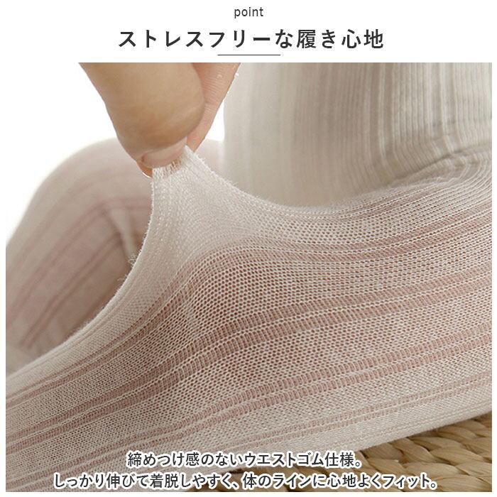 ・締めつけ感のないウエストゴム仕様。しっかり伸びて着脱しやすく、体のラインに心地よくフィット。