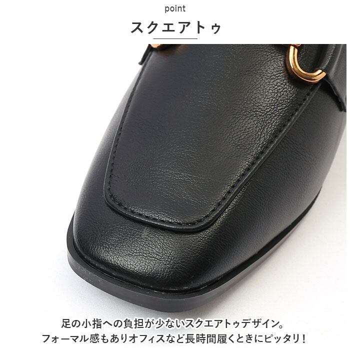 ・足の小指への負担が少ないスクエアトゥデザイン。フォーマル感もありオフィスなど長時間履くときにピッタリ!