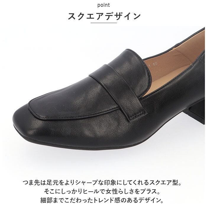 ・つま先は足元をよりシャープな印象にしてくれるスクエア型。そこにしっかりヒールで女性らしさをプラス。細部までこだわったトレンド感のあるデザイン。