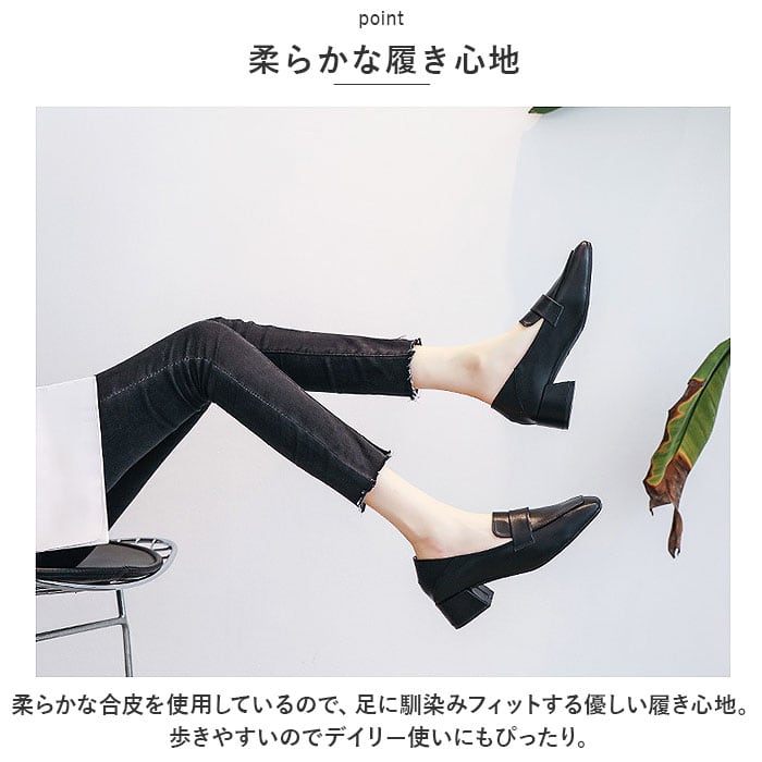 ・柔らかな合皮を使用しているので、足に馴染みフィットする優しい履き心地。歩きやすいのでデイリー使いにもぴったり。