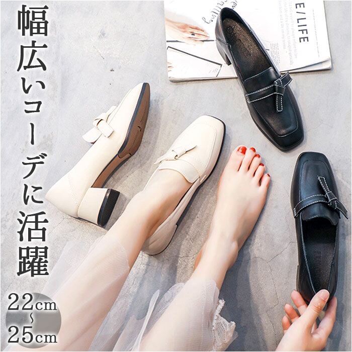 ローファー レディース 大人 通販 パンプス レディース靴 シューズ ローヒール ヒール スクエアトゥ 蝶結び リボン レトロ 婦人靴 通学 通勤 オフィス 学生 靴