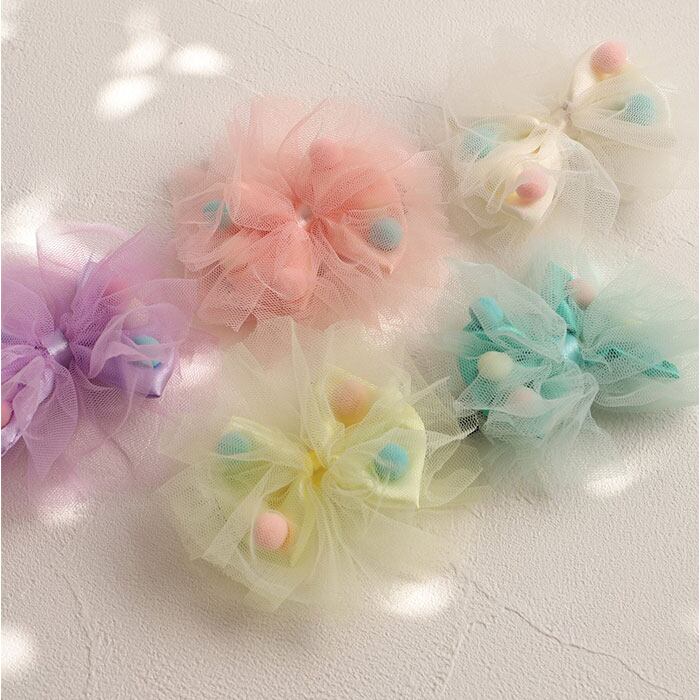 ・ふわっとチュールからのぞく、カラフルポンポン♪