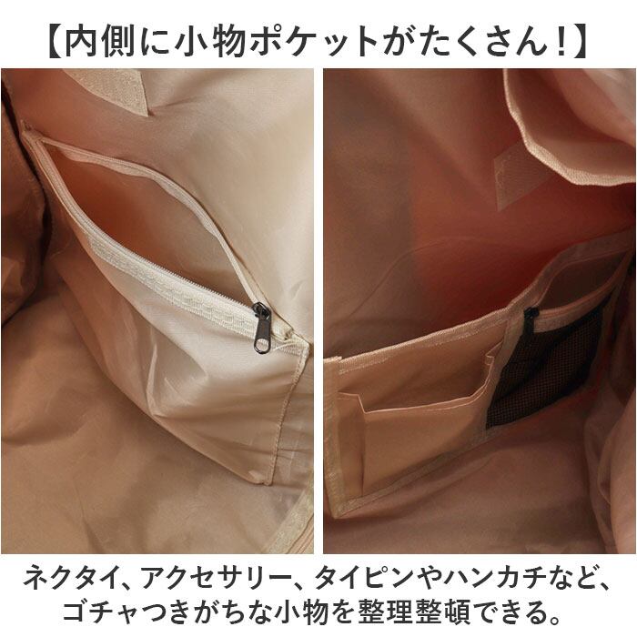 ・ガーメントポケット:衣類収納×1、ファスナーポケット×2、オープンポケット×3、メッシュポケット×1
