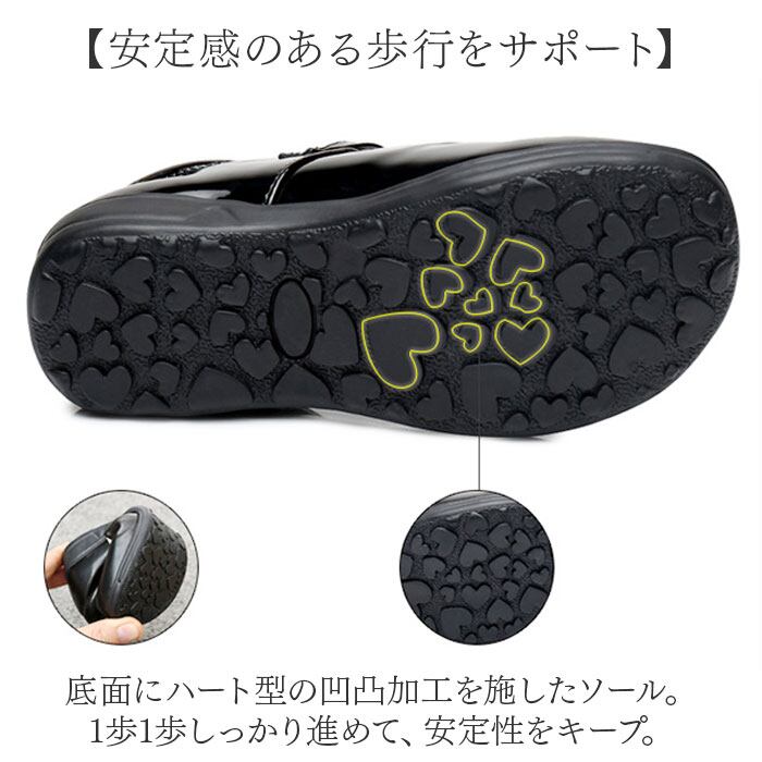 ・底面にハート型の凹凸加工を施したソール。1歩1歩しっかり進めて、安定性をキープ。