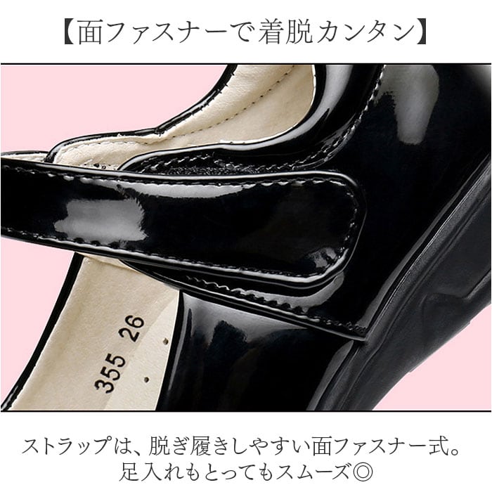 ・ストラップは、脱ぎ履きしやすい面ファスナー式。足入れもとってもスムーズ◎