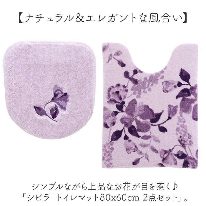 ・シンプルながら上品なお花が目を惹く♪「シビラ トイレマット80x60cm 2点セット」。