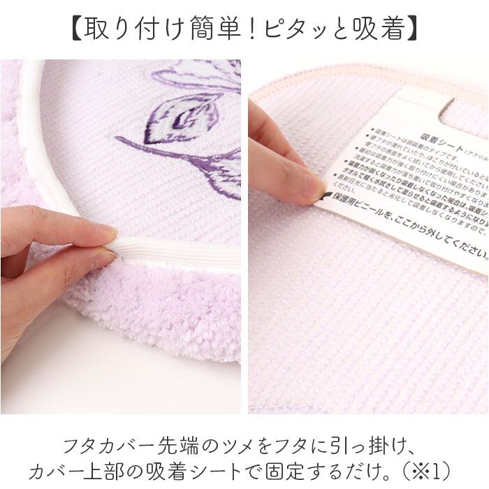 ・フタカバー先端のツメをフタに引っ掛け、カバー上部の吸着シートで固定するだけ。