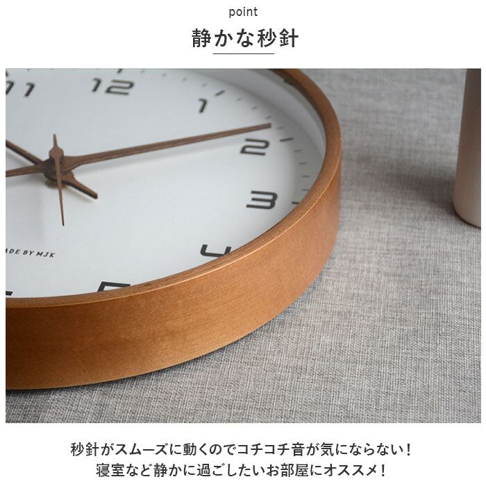 ・秒針がスムーズに動くのでコチコチ音が気にならない!寝室など静かに過ごしたいお部屋にオススメ!