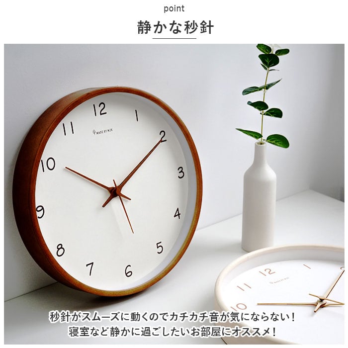 ・秒針がスムーズに動くのでカチカチ音が気にならない!寝室など静かに過ごしたいお部屋にオススメ!