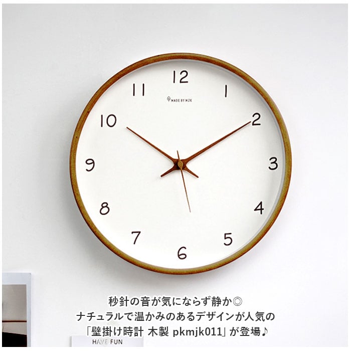 ・秒針の音が気にならず静か◎ナチュラルで温かみのあるデザインが人気の「壁掛け時計 木製 pkmjk011」が登場♪