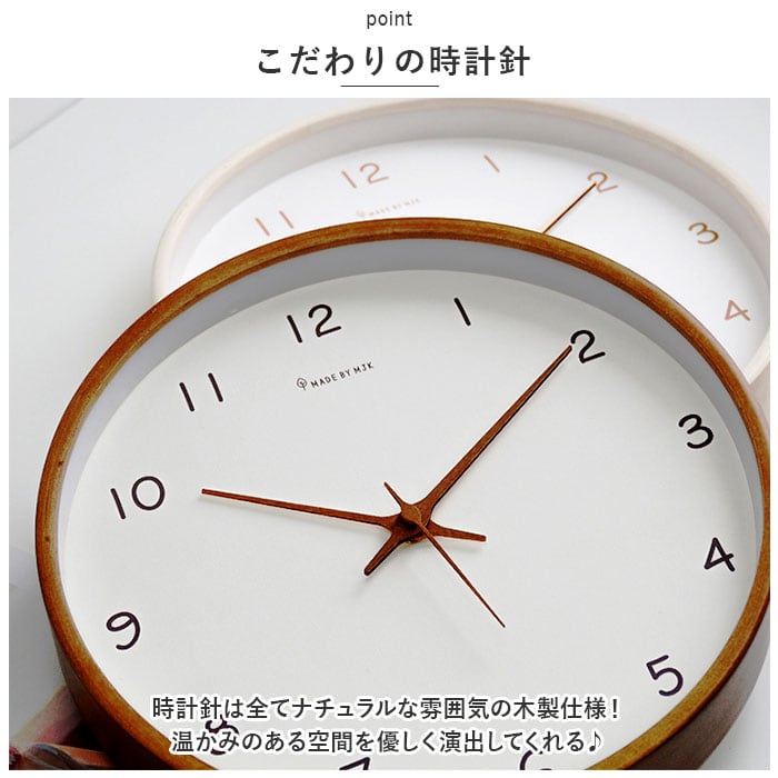 ・時計針は全てナチュラルな雰囲気の木製仕様!温かみのある空間を優しく演出してくれる♪
