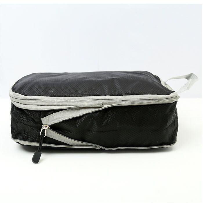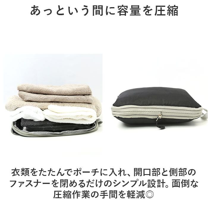 ・衣類をたたんでポーチに入れ、開口部と側部のファスナーを閉めるだけのシンプル設計。面倒な圧縮作業の手間を軽減◎