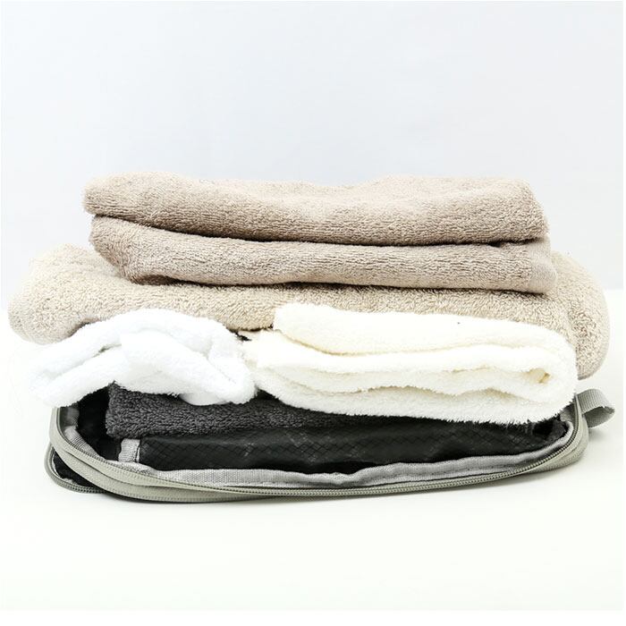 ・厚みが半分程度にまで圧縮されるので、バッグやスーツケースの中身がすっきり。スペースを有効活用。