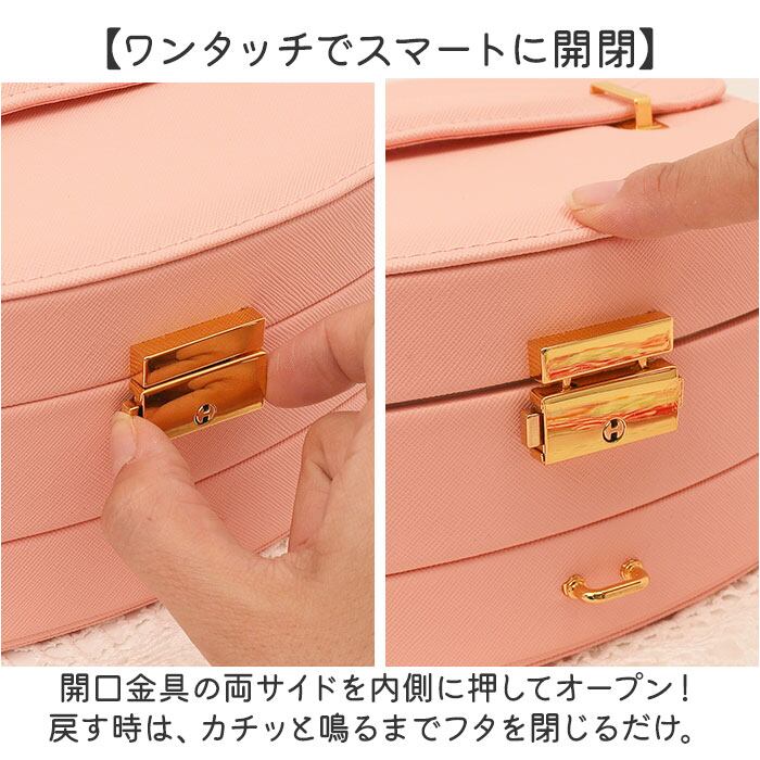 ・フタ裏には鏡が付いており、イヤリングなどもスムーズに着脱。