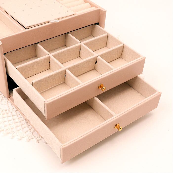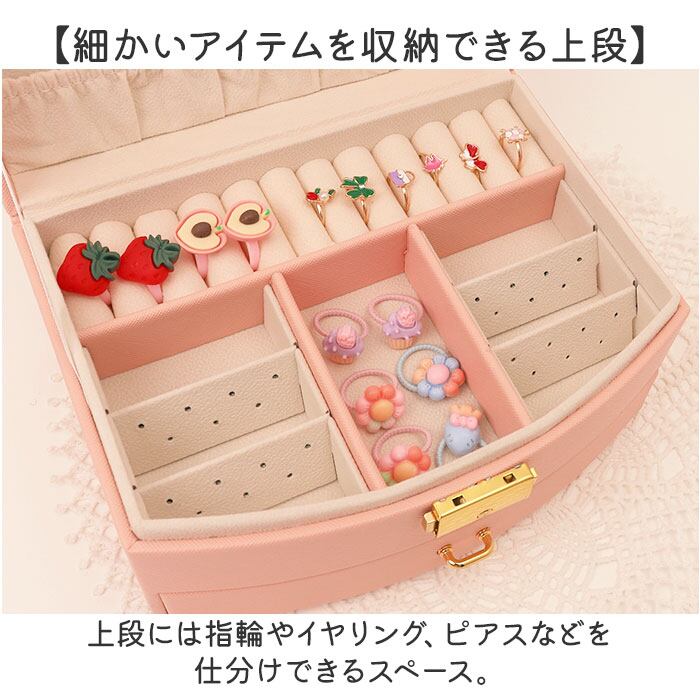 ・上段には指輪やイヤリング、ピアスなどを仕分けできるスペース。