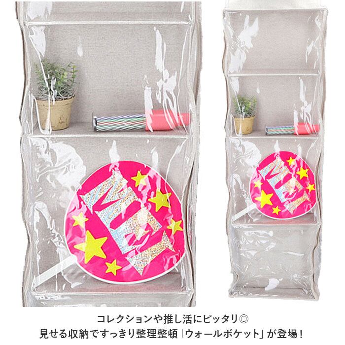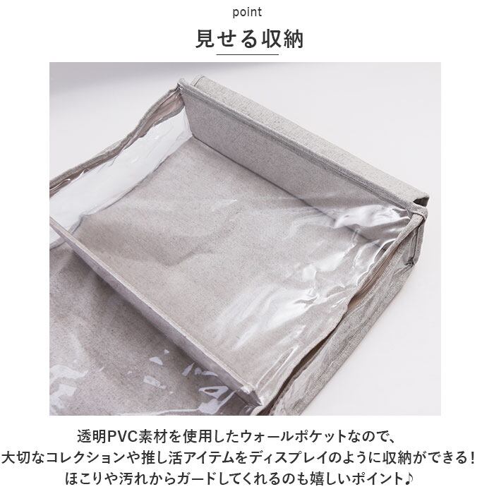 ・透明PVC素材を使用したウォールポケットなので、大切なコレクションや推し活アイテムをディスプレイのように収納ができる!ほこりや汚れからガードしてくれるのも嬉しいポイント♪