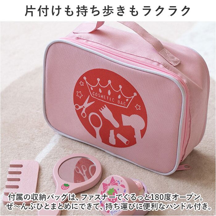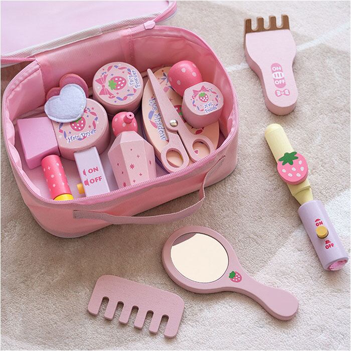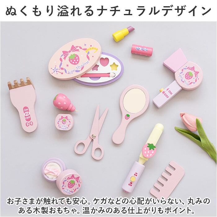 ・ママの真似がしたいお子さまにぴったり♪メイクアップやヘアセットごっこが楽しめる「木製おもちゃセット」が新登場。(対象年齢3~6歳)