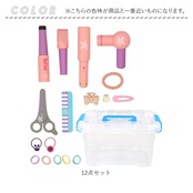 ・ミニコーム、はさみ、コテ、ヘアアイロン、ドライヤー、バリカン、ヘアゴム、ヘアピン