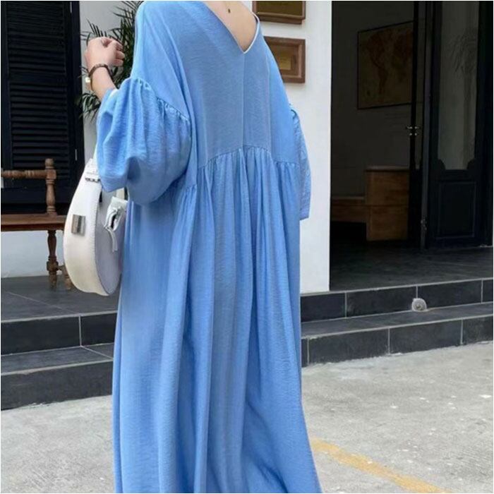 ゆったり ワンピース レディース 通販 ロング丈 ロングワンピース 七分袖 ロング 無地 マタニティ オシャレ おしゃれ ビックシルエット Vネック 大きいサイズ 春 夏 秋 かわいい 大人 女性 シンプル お出かけ 普段着 レディースファッション