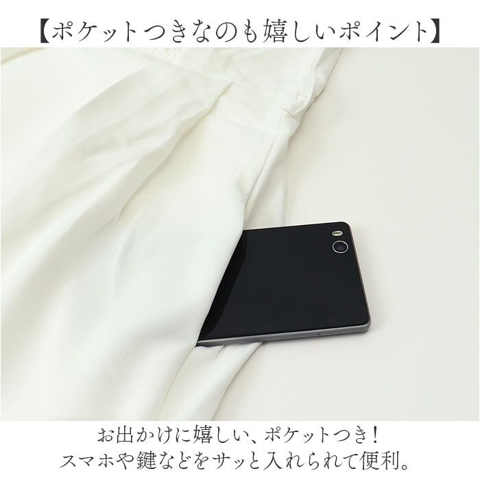 ・お出かけに嬉しい、ポケットつき!スマホや鍵などをサッと入れられて便利。
