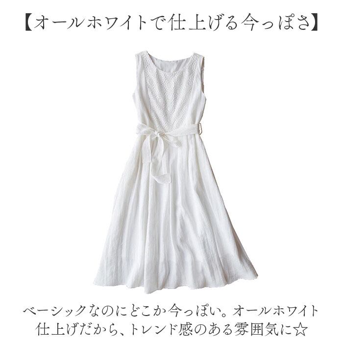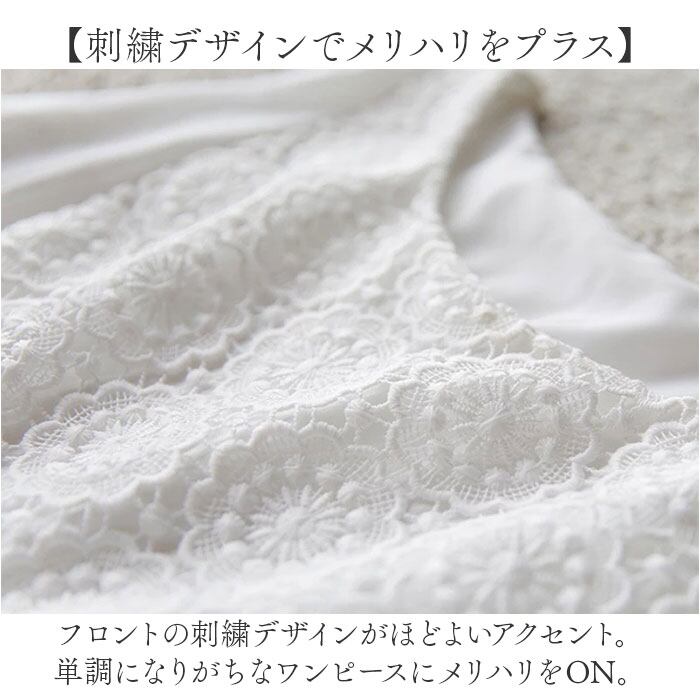 ・フロントの刺繍デザインがほどよいアクセント。単調になりがちなワンピースにメリハリをON。