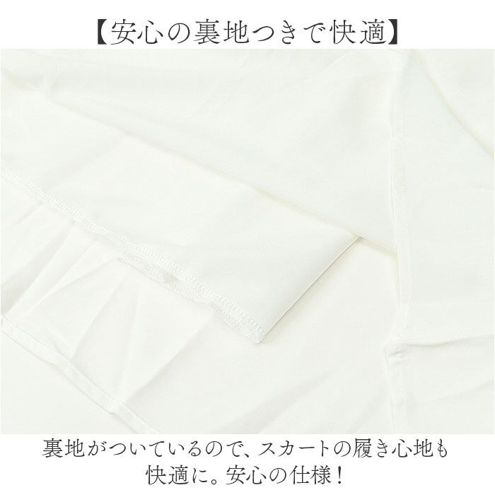 ・裏地がついているので、スカートの履き心地も快適に。安心の仕様!