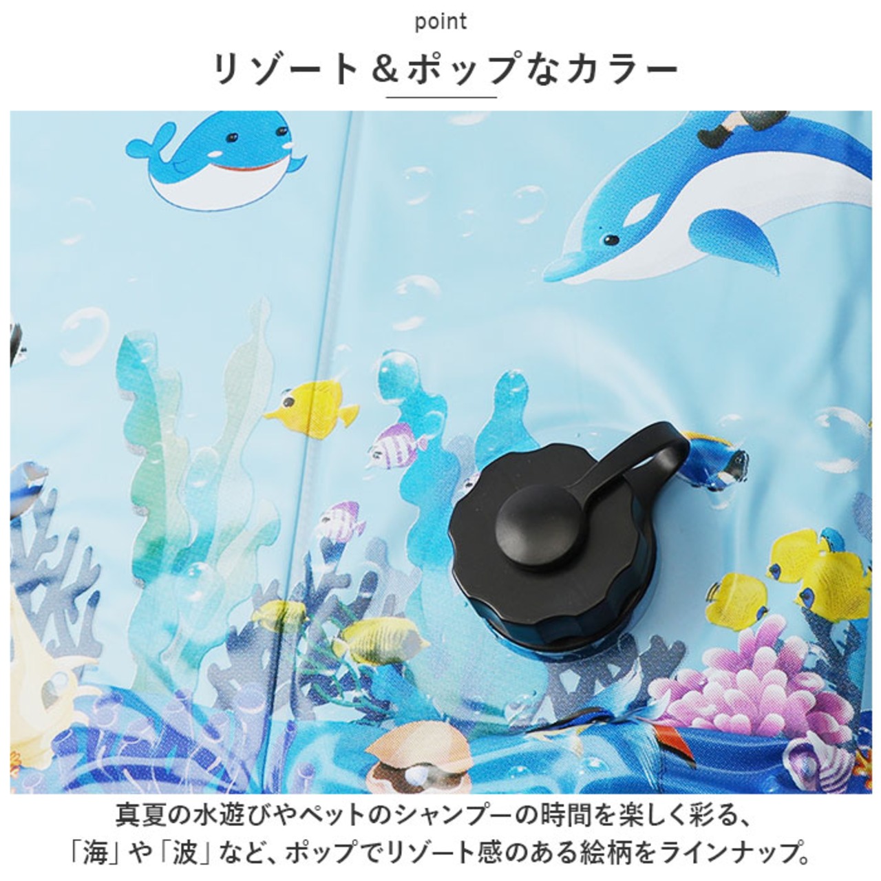 ・真夏の水遊びやペットのシャンプーの時間を楽しく彩る、「海」や「波」など、ポップでリゾート感のある絵柄をラインナップ。