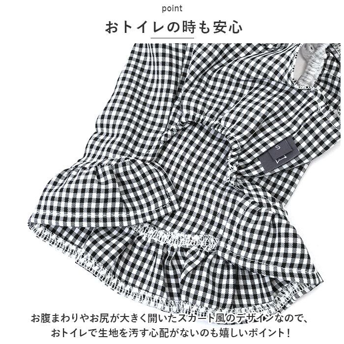 ・お腹まわりやお尻が大きく開いたスカート風のデザインなので、おトイレで生地を汚す心配がないのも嬉しいポイント!