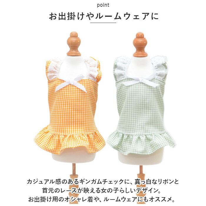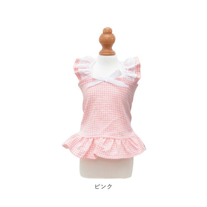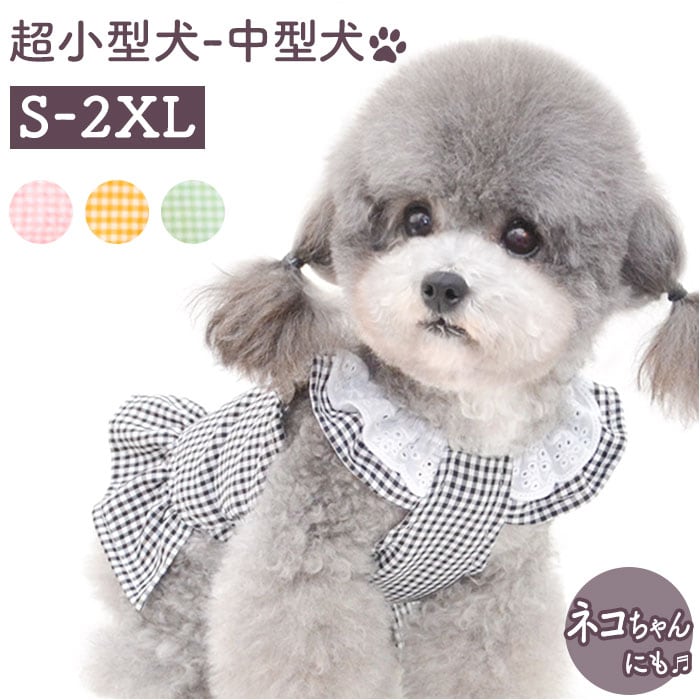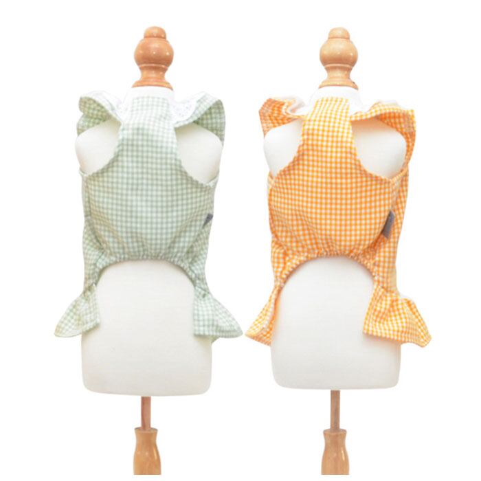 ・優しい色合いのギンガムチェックでオシャレなお散歩コーデ♪おしゃまなワンちゃんの可愛らしさが引き立つ「ドッグウェア(女の子用)」が新登場。