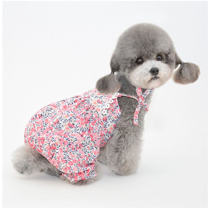 ・爽やかなボタニカル柄がお散歩やお出掛けにぴったり♪可愛らしくオシャレに着こなせる「ドッグウェア(女の子用)」が新登場。